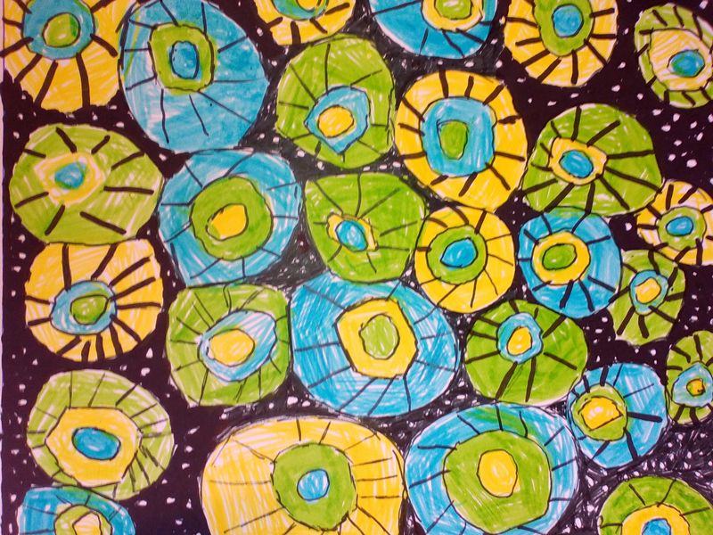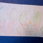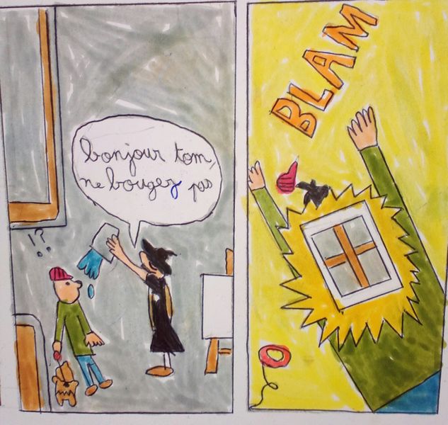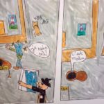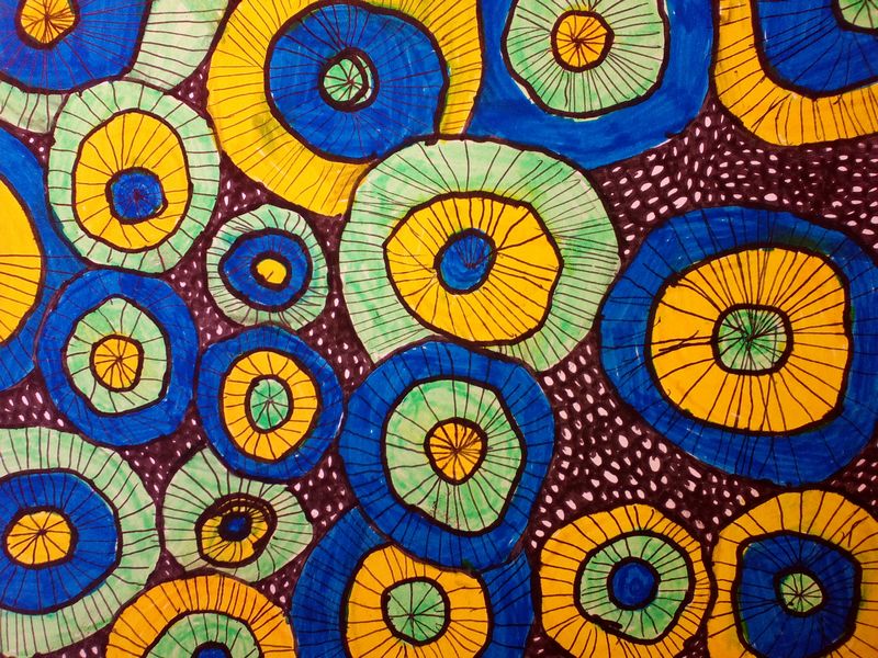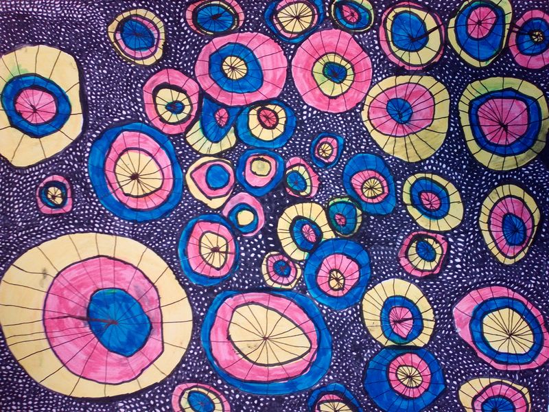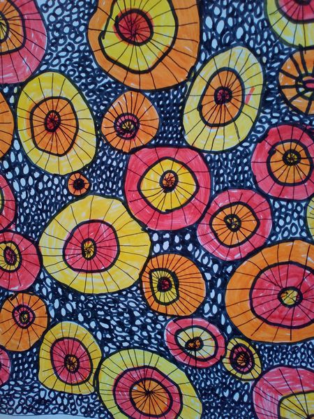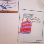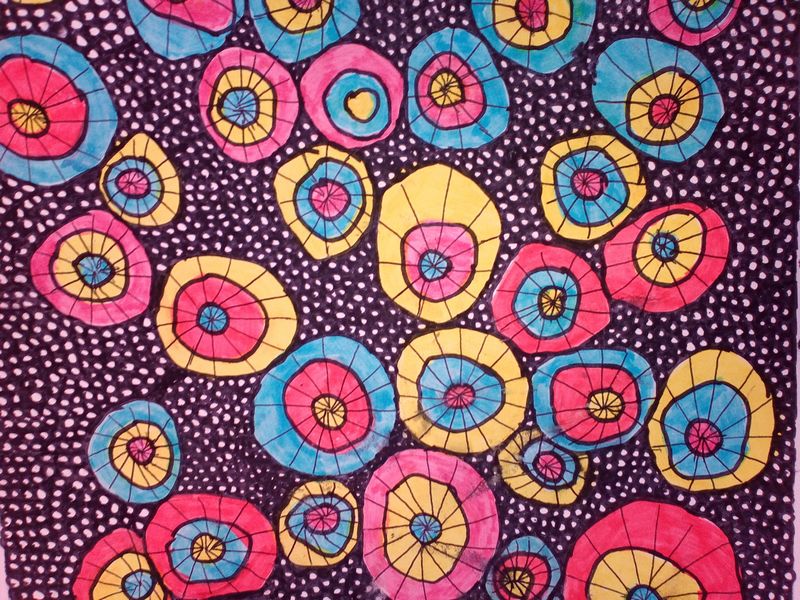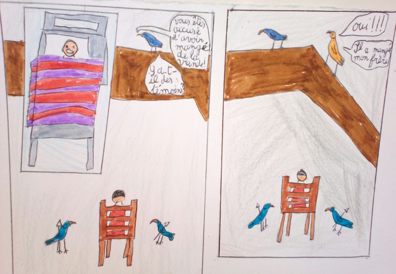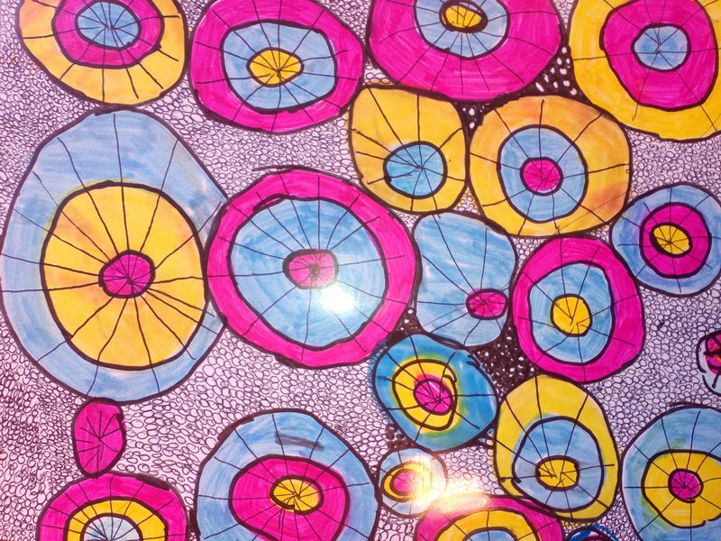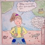 On a d’abord dessiné nos Mona Lisa, puis nous avons encré. Après, il fallait choisir 3 matières pour colorier : feutres, crayons de couleur, craies grasses, encre, collage…