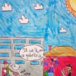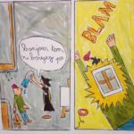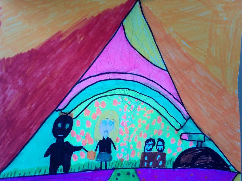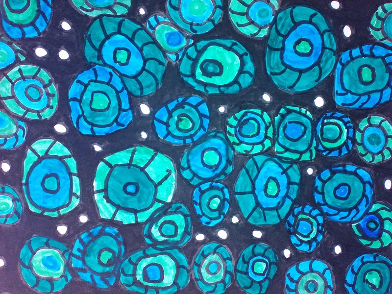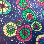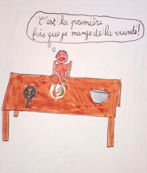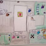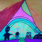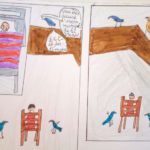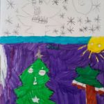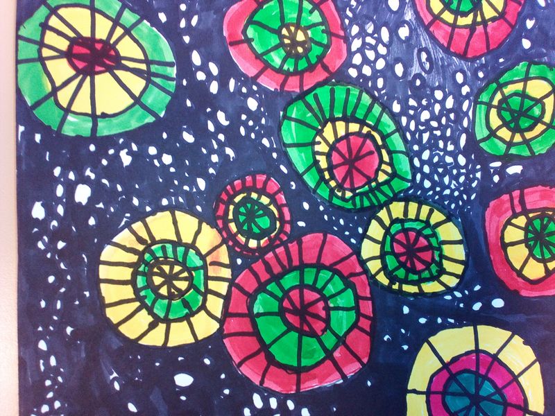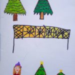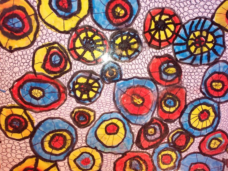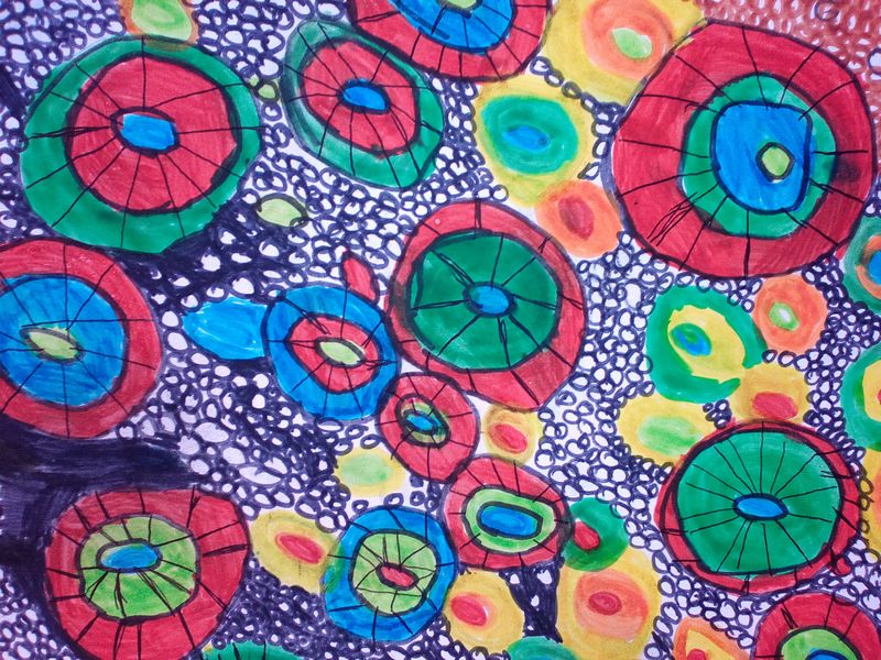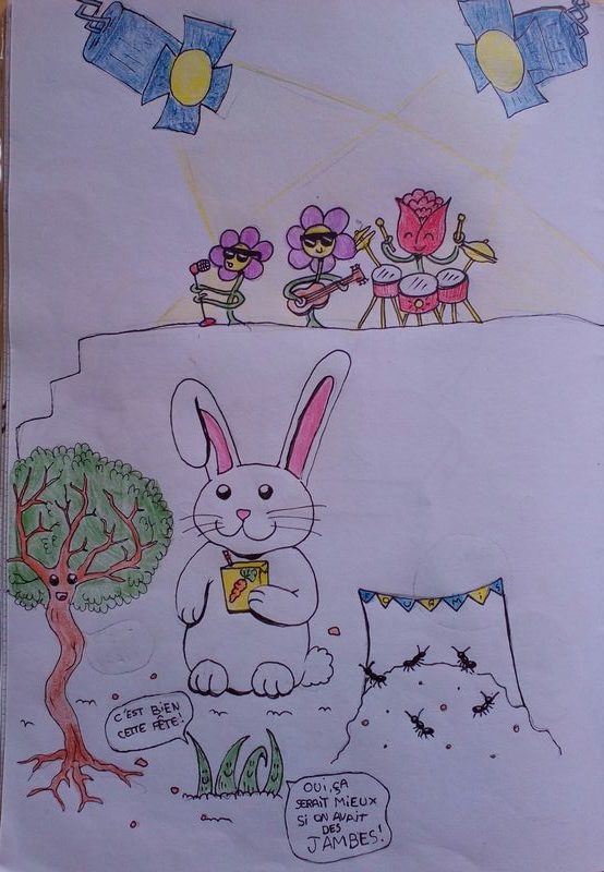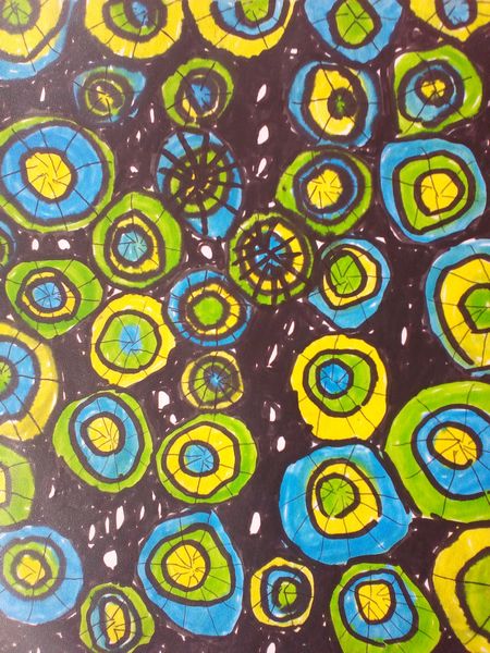 On a d’abord dessiné nos Mona Lisa, puis nous avons encré. Après, il fallait choisir 3 matières pour colorier : feutres, crayons de couleur, craies grasses, encre, collage…