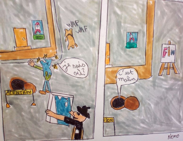 Pour créer nos Mona Lisa, maîtresse nous a d’abord montré la vrai Mona Lisa de Léonard de Vinci puis celle des reprises de grand artistes.