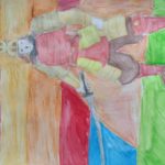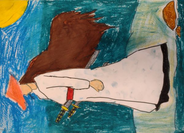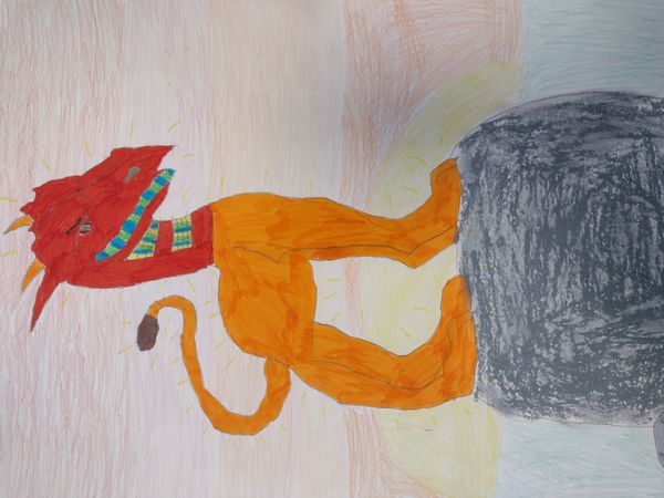 Ainsi commença un combat à la vie à la mort ! Le combat était très équilibré mais Pésée essayait d’attraper les attributs. Quand soudain, il eut une idée : il allait combattre près des attributs puis il allait les pousser vers la sortie. Quand il commença à exécuter son plan, il glissa et il tomba par terre ! Ainsi au sol, il poussa les attributs avec sa tête. Puis il rampa vers la sortie des Enfers mais Hadès appela Cerbère ! Cerbère arriva tellement vite qu’il tomba sur Hadès. Hadès resta coincé sous Cerbère pendant quelques minutes !