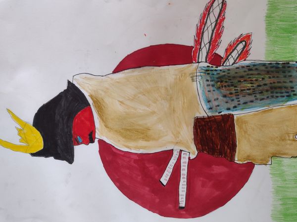 Et ils arrivèrent dans un monde où tout était gigantesque : il n’y avait pas d’habitations mais il y avait des fleurs géantes et d’énormes insectes qui faisaient peur à voir …