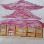 Ils arrivèrent cette fois dans une forêt sombre mais à l’orée, ils distinguaient une sorte de maison biscornue noire.