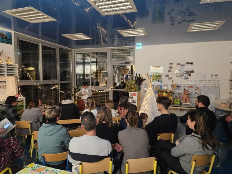 Cette participation des CM1-CM2 fait suite à une préparation pédagogique tenue quelques jours auparavant. A cette occasion, Lionel Bourguignon est venu en classe pour expliquer aux élèves de l’école entière les enjeux de la Première Guerre Mondiale et a présenté une partie de sa collection. L’intervention s’est concentrée sur le thème de l’année : l’armement en 14-18.