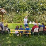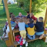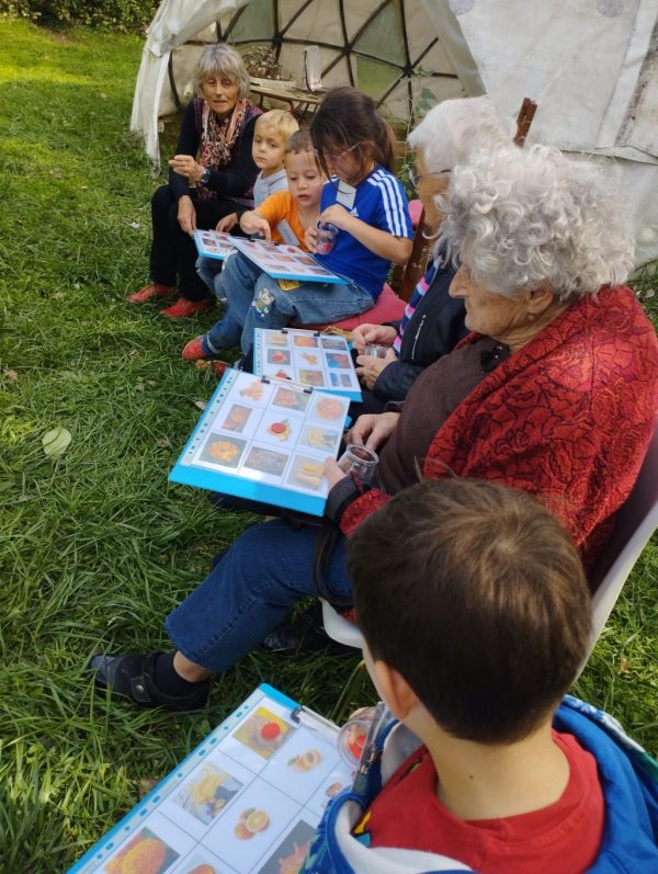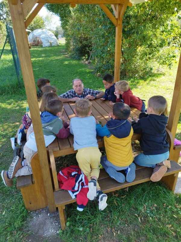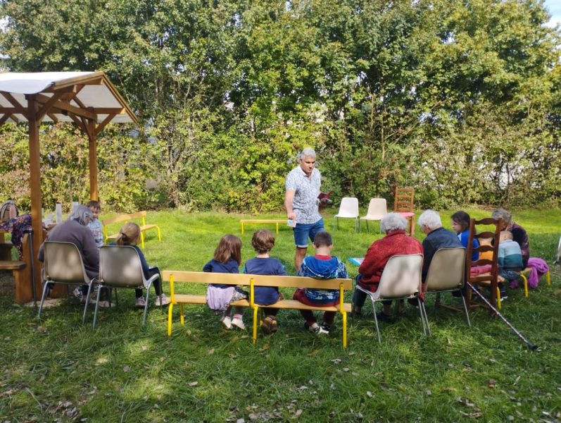 Nous avons vu un chevreuil qui était dans un champ à côté de l’école. Nous avons installé des bancs et des chaises dans le jardin. Nous avons récité une poésie. Nous avons parlé en patois parce que Sylvie Papot nous apprend des mots en patois. Il y a une résidente qui parle aussi en patois.