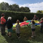 Après la récréation, nous avons fait trois ateliers. Nous avons observé les oiseaux avec des jumelles. Nous avons joué avec le parachute, c’est un rond en toile. Il faut envoyer une balle dans le trou au milieu. Nous avons joué au loto avec des images orange comme le titre, Tigrou, le poisson clown, le renard, la clémentine, la carotte, le potimarron, le butternut, le panda roux, l’écureuil, la Bête, le corail, le pont de San Francisco, l’orang-outan, l’orange, la pêche, l’abricot, le souci, l’œillet d’Inde, l’ambre et la citrouille.