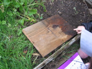 Nous avons mis des pierres sous les planches pour que les escargots puissent venir dessous.