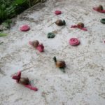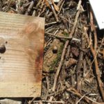 Sous la Planche 2, la terre était sèche, les escargots sont partis sur la terre mouillée, humide. Il n’y avait plus d’escargots, pas de limace, mais on a vu de la bave et des crottes d’escargots.