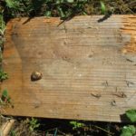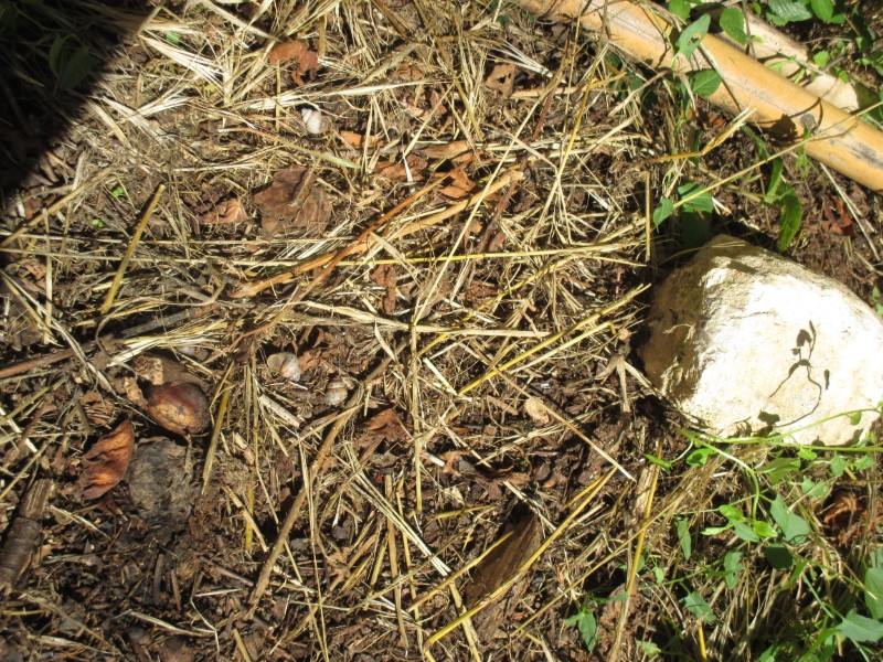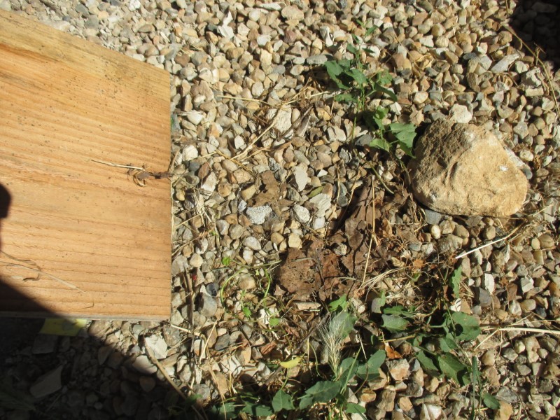 Sous la Planche 2, la terre était sèche, les escargots sont partis sur la terre mouillée, humide. Il n’y avait plus d’escargots, pas de limace, mais on a vu de la bave et des crottes d’escargots.