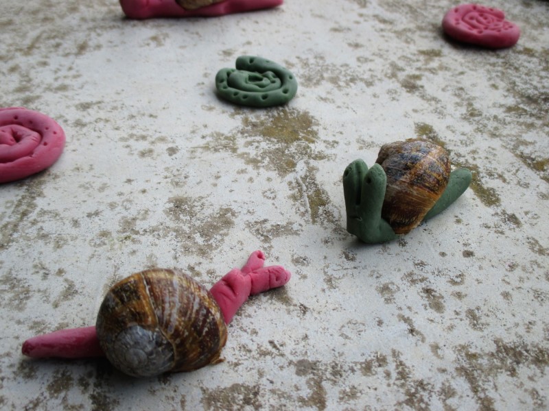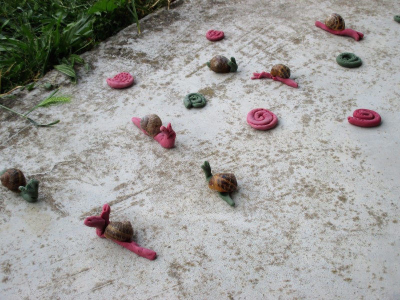 Mais en fin de journée, nous avons aperçu dans le jardin, devant notre classe, l’arrivée d’escargots étranges !!!