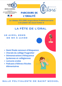 Le dix avril dernier avait lieu à Saint Michel la fête de l’oral du réseau éclore de la circonscription Charente Préélémentaire.