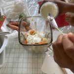 Il est temps ensuite de passer à la pratique ! Avec les parents, les enfants ont préparé smoothies, carrot cake ou cake kiwi-banane.