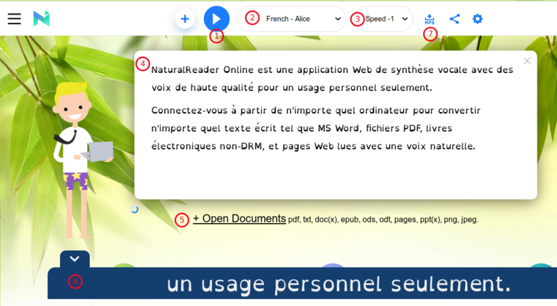 NaturalReader Online est une application Web de synthèse vocale avec des voix de haute qualité pour un usage personnel seulement. Connectez-vous à partir de n’importe quel ordinateur pour convertir n’importe quel texte écrit tel que MS Word, fichiers PDF, livres électroniques non-DRM, et pages Web lues avec une voix naturelle.