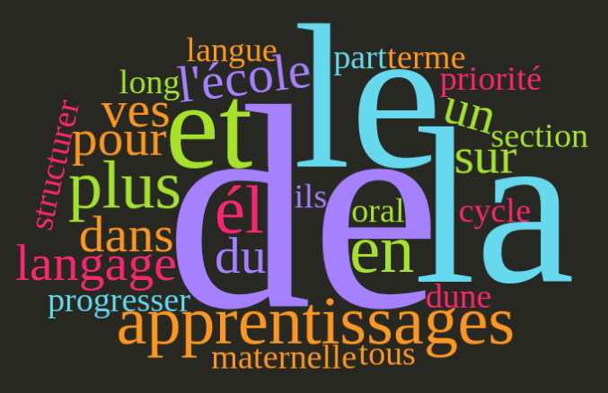 Nuage de mots est une application gratuite en ligne qui permet de générer un nuage de mots à partir d’un texte par copier-coller, ou un document pdf ou word. Vous avez la possibilité de choisir la forme de votre nuage, la couleur, la police, l’orientation etc. Une fois le nuage créé, il vous suffit de télécharger votre réalisation au format png ou jpg ou svg. Ce dernier format est éditable avec inkscape notamment si on veut faire un tri de mots en lien avec l’étude de la langue pour préparer une production écrite.