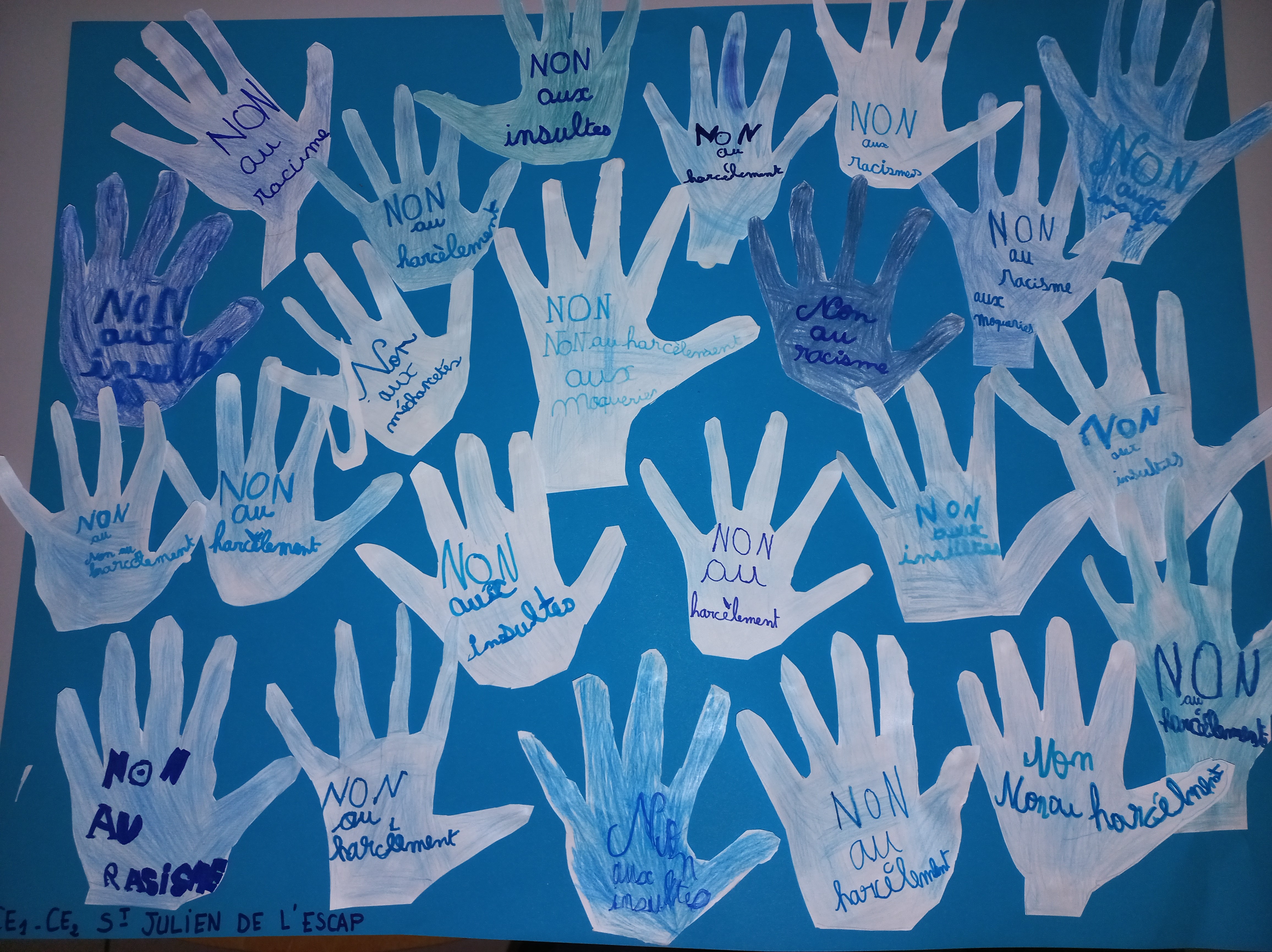 Le 9 novembre a eu lieu la journée nationale de lutte contre le harcèlement “Non Au Harcèlement”. Voici la production des élèves de la classe de CE1/CE2 de Saint Julien de l’Escap.