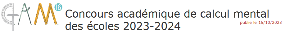 Le département de la Charente propose un concours académique de calcul mental, destiné aux élèves du CE1 au CM2. https://ww2.ac-poitiers.fr/dsden16-pedagogie/spip.php?article1176