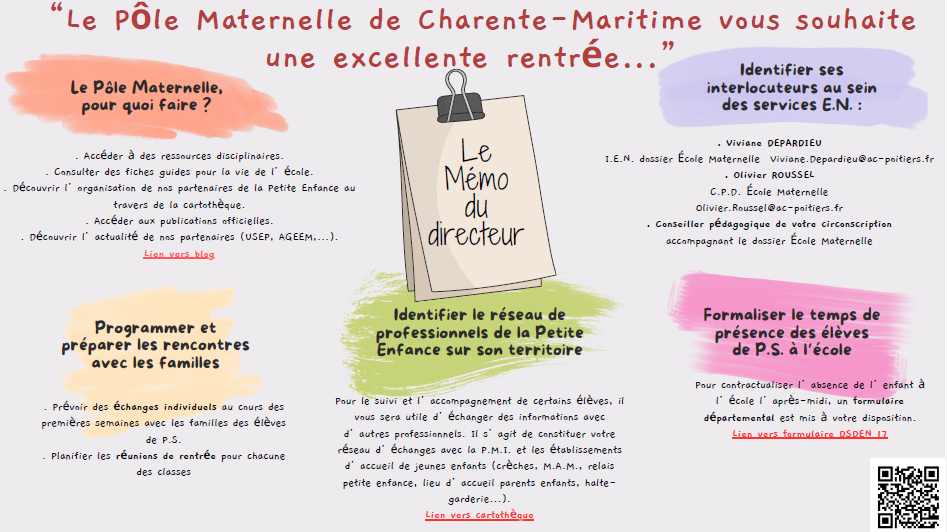 Pôle maternelle – le mémo du directeur