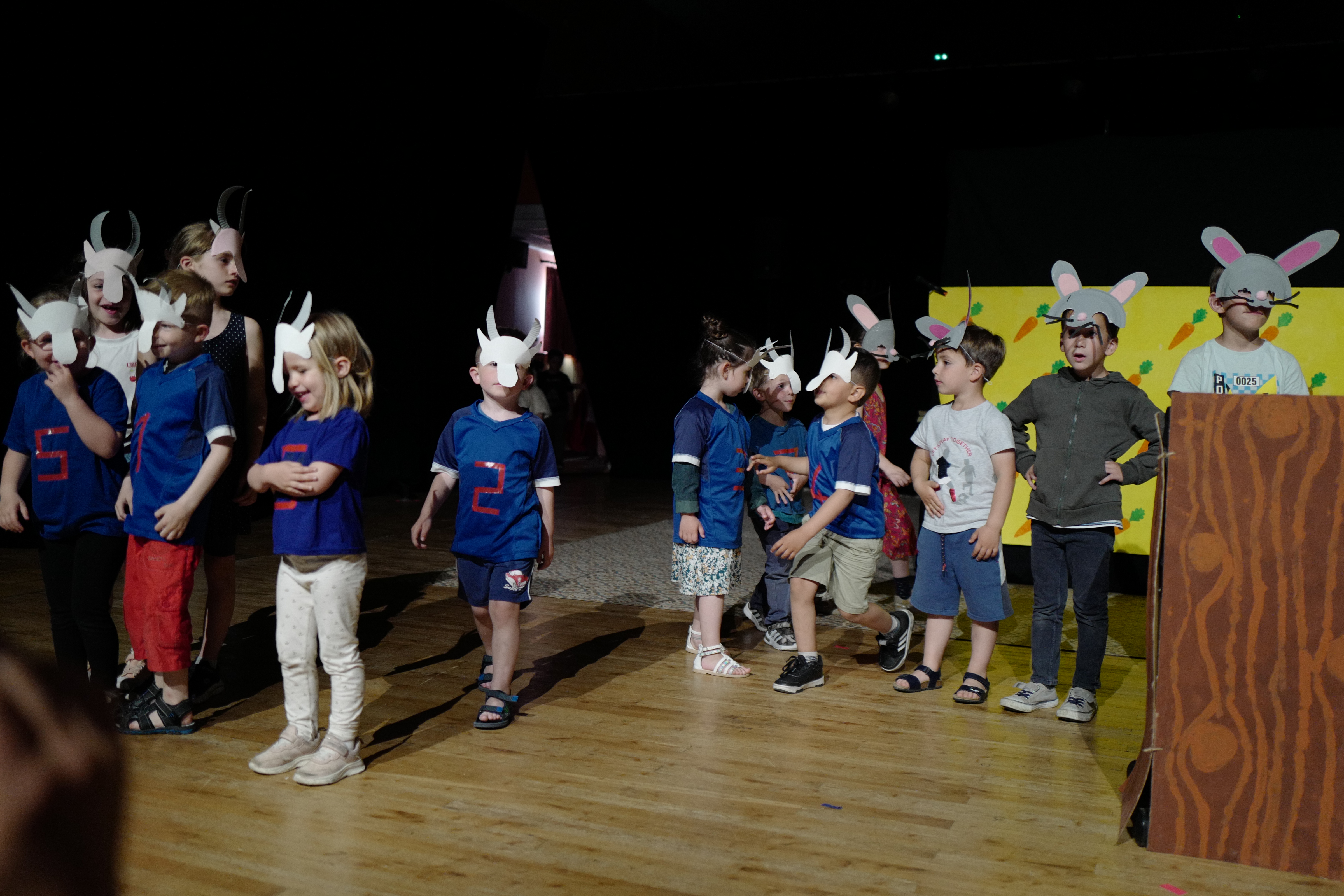 Ce beau projet a donné lieu à des apprentissages disciplinaires et notamment un travail sur le lexique spécifique du théâtre, mais a aussi permis d’apprendre à reconnaitre les émotions et à les jouer, à mémoriser un texte et savoir le délivrer au bon moment face au public, entrer et sortir de scène de manière autonome… Les élèves ont aussi fabriqué les décors, les costumes, et les accessoires.