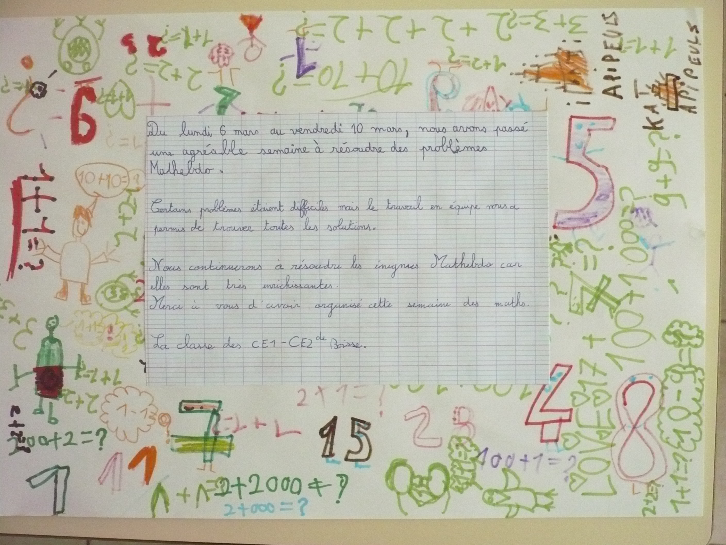 Marsais : Les élèves de Mme Claudéon ont expérimenté la proposition départementale de Mathébdo. Voici le compte-rendu de leur semaine des maths :