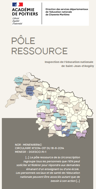 Le pôle ressource de la circonscription regroupe tous les personnels que l’IEN peut solliciter et fédérer pour répondre aux demandes émanant d’un enseignant ou d’une école. Les personnels sociaux et de santé de l’éducation nationale peuvent être associés autant que de besoin à son action […]