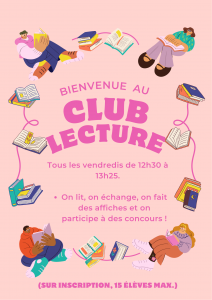 La première séance du club lecture a réuni pas moins de 12 participants, de la 6ème et la 5ème. Les élèves se sont vus présenter les différents temps de l’année : lecture, partage, création d’affiches, de critiques de livres.