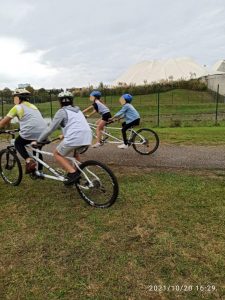 Ils ont essayé un pignon fixe sur Hometrainer ; ils ont pesé un vélo entièrement en carbon ; ils ont pu se mettre à la place d’un coureur cycliste non-voyant pour tester le tandem ; découvrir ainsi que manipuler tout le matériel présent.