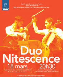 vendredi 18 avril 2022-Concert saison professionnelle Dans le cadre de la saison professionnelle du conservatoire de Saintes, quatre classes de la circonscription de Saintes ont pu profiter d’un concert du duo Nitescence (Violoncelle : Jean-Nicolas Richard – Guitare : François Chappey). Un programme d’adaptations pour guitare et violoncelle de pièces […]