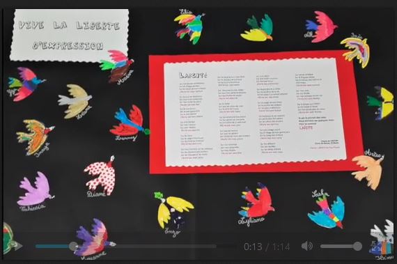 Voici un exemple de carte sonore réalisée pour les vœux de la circonscription de St jean d’Angély. Chant enregistré avec 2 classes et productions plastiques réalisées dans le cadre de la journée de la Laïcité https://blogpeda.ac-poitiers.fr/eac17/wp-content/blogs.dir/1856/files/2021/01/Meilleurs-voeux-1.mp4