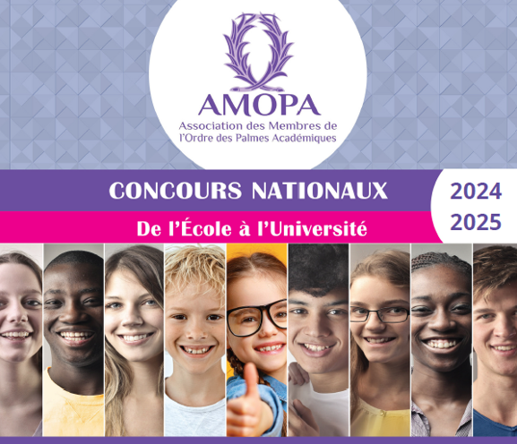 L’AMOPA [association des Membres de l’Ordre des Palmes Académiques] organise un grand nombre de PRIX et CONCOURS nationaux en direction des enseignants des élèves, de la maternelle à la terminale. Tous les détails ci-dessous :