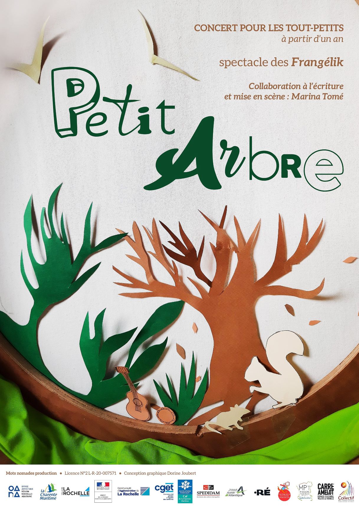 Création coproduite par Mots Nomades production, la CDC Aunis Atlantique, Point Ré Domaine culturel La Maline, Le Moulin du Marais, La maison pour tous d’Aiffres, soutenue par la SPEDIDAM, résidences rémunérées OARA. Actions de médiation-création soutenues par la CAF 17, la DRAC, le CGET, la CDA et la Ville de La Rochelle
