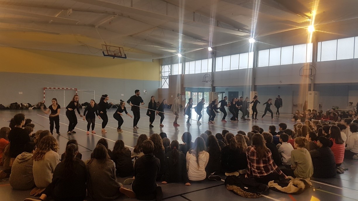 - Des ateliers de pratique (20 minutes). Chaque danseur de l’ABC prend en charge les collégiens par petit groupe.