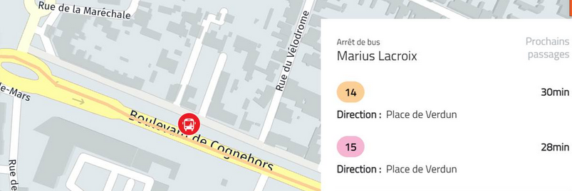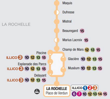 Ligne 14 : l’arrêt Marius Lacroix n’est desservi que dans le sens Place de Verdun, auquel cas les classes peuvent descendre à champ de Mars. Idem pour la ligne 15.