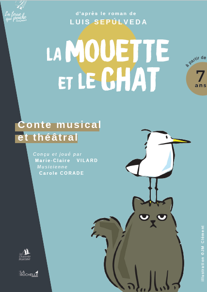 De quoi s’agit-il ? La compagnie LA TERRE QUI PENCHE propose un spectacle, adapté du roman de Luis Sepulveda intitulé La Mouette et le Chat.