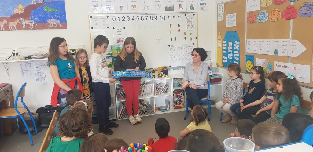 Les délégués de CM, accompagnés de Lya (qui avait évoqué cette idée il y a quelques années) ont décoré une affiche. Ils ont ensuite présenté le projet dans chaque classe avant de l’accrocher sur un banc.