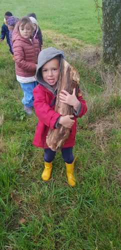 En arrivant à notre cabane, nous avons remis quelques branches tombées. Puis nous nous sommes rendus compte qu’il n’y avait pas assez de bûches, de troncs pour tous. Nous sommes donc allés en chercher.