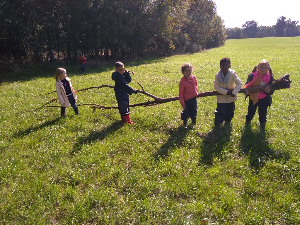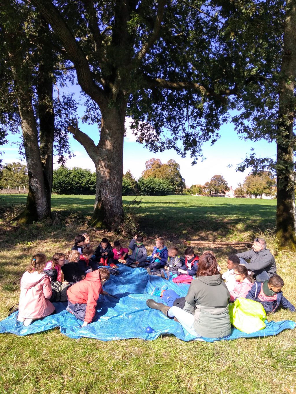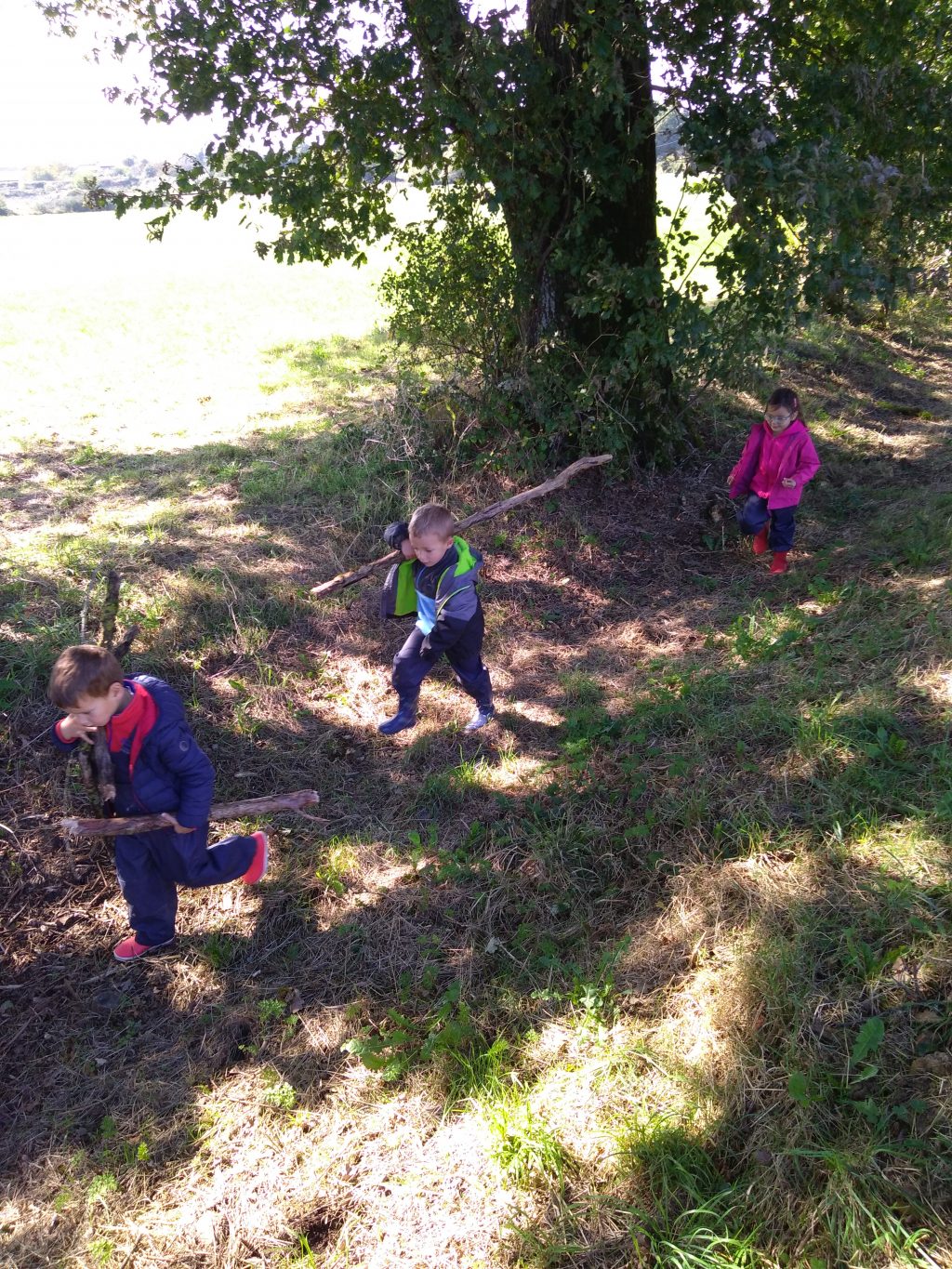 Vendredi 4 octobre, nous avons fait notre première sortie “Ecole dehors” sous un beau soleil.