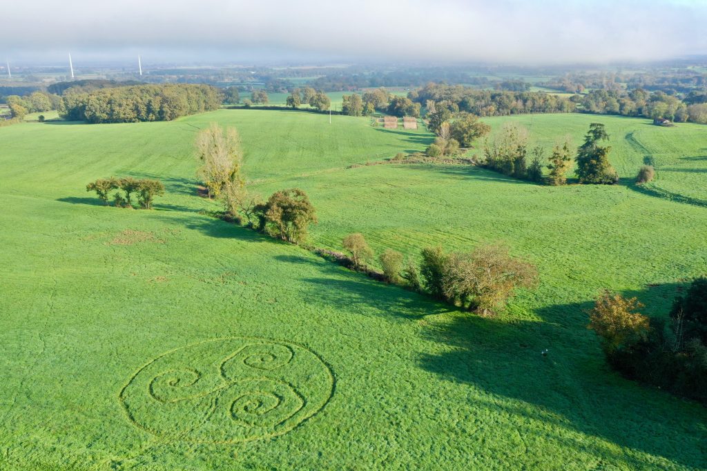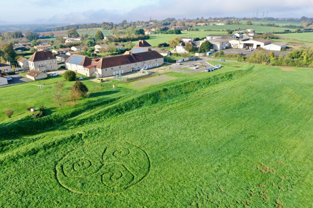 Dans le cadre de la semaine irlandaise, les élèves de la classe de CE1 CE2 ont réalisé, lors de la journée “école dehors”, un triskèle. Il s’agit d’un motif symbolique et décoratif celtique formé de trois jambes ou trois branches incurvées dans le même sens autour d’un centre.