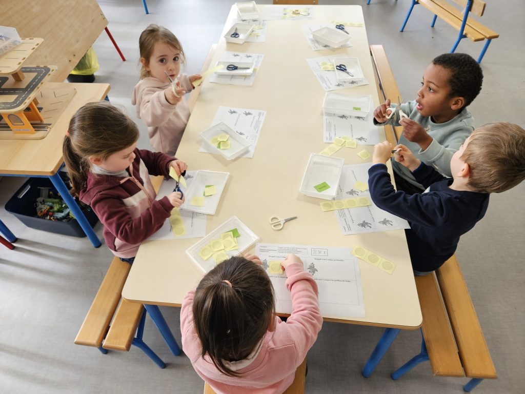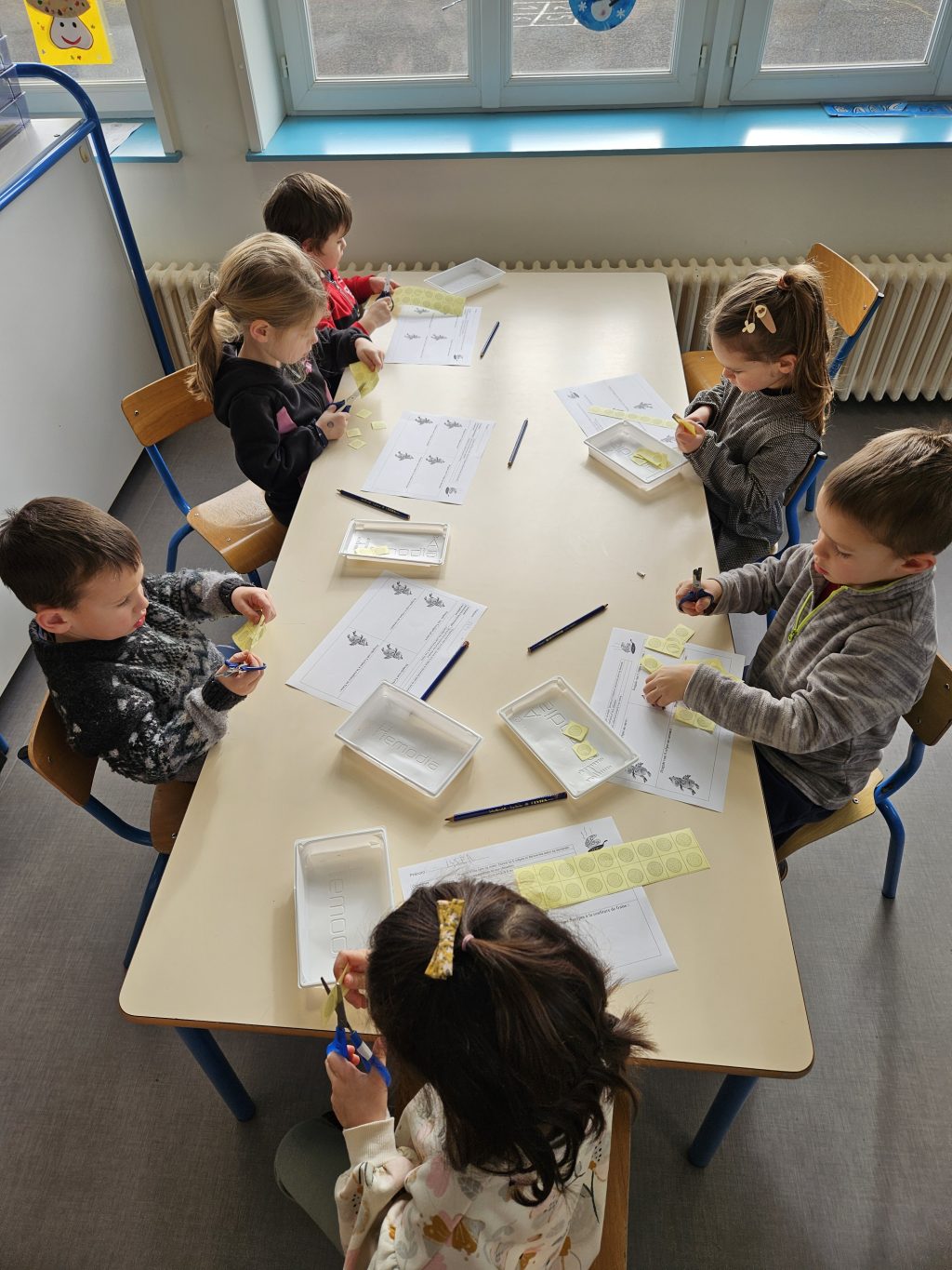 Nous avons fait de la numération (jusqu’à 2 pour les PS et 5 pour les MS) en donnant des crêpes à manger à Dragolo !