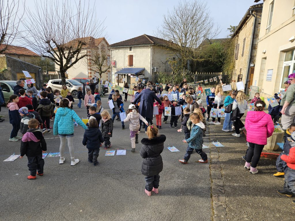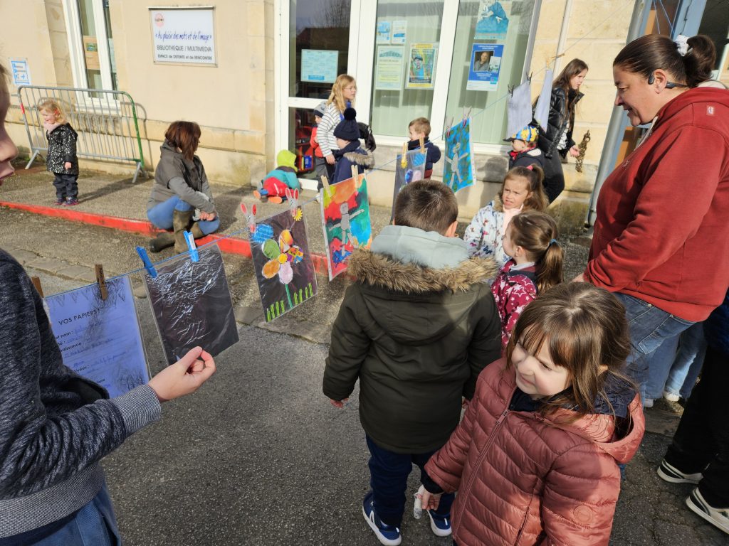 Jeudi 20 mars, tous les enfants de l’école ont participé à l’opération nationale d’art éphémère “La Grande Lessive”. Le thème cette année était « Un papier, des papiers, vos papiers ».