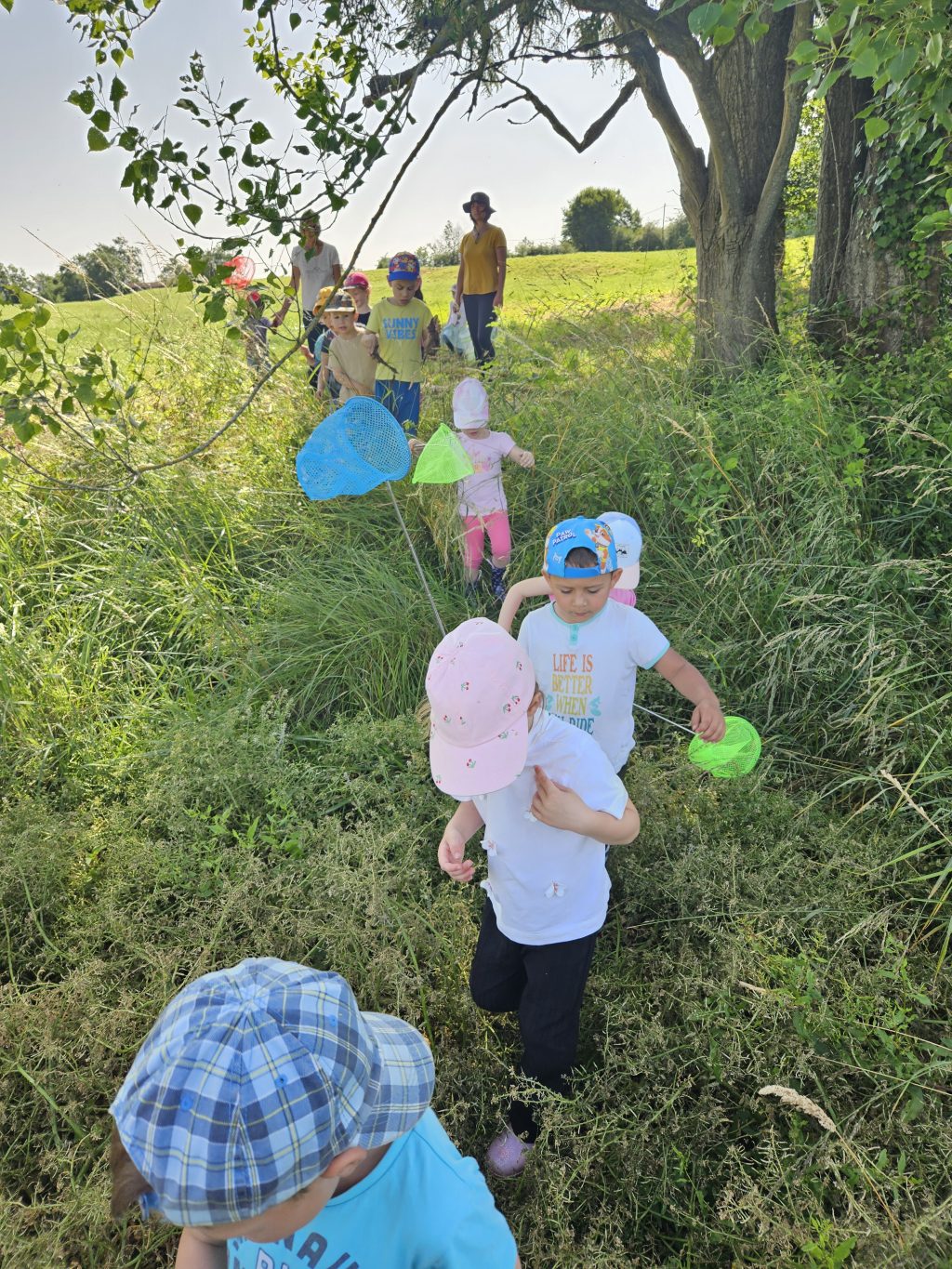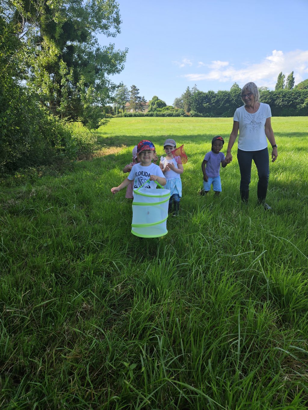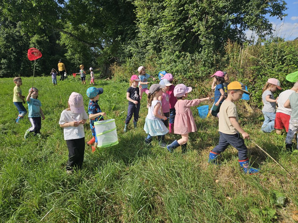Ce jeudi 12 juin, nous sommes allés à la découverte des papillons. Après la lecture de “La petite chenille qui fait des trous” nous avons pris nos filets à papillon et nous sommes allés à leur rencontre.