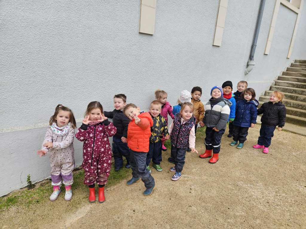 Nous avons fait notre 1ère séance école dehors ce matin. Après quelques minutes d’habillage, nous sommes prêts !
