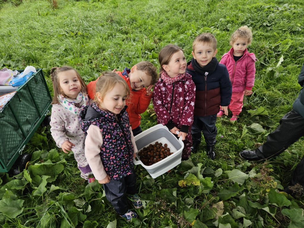 Nous avons découvert des noix au sol. Nous les avons ramassés pour un futur goûter dans la classe.