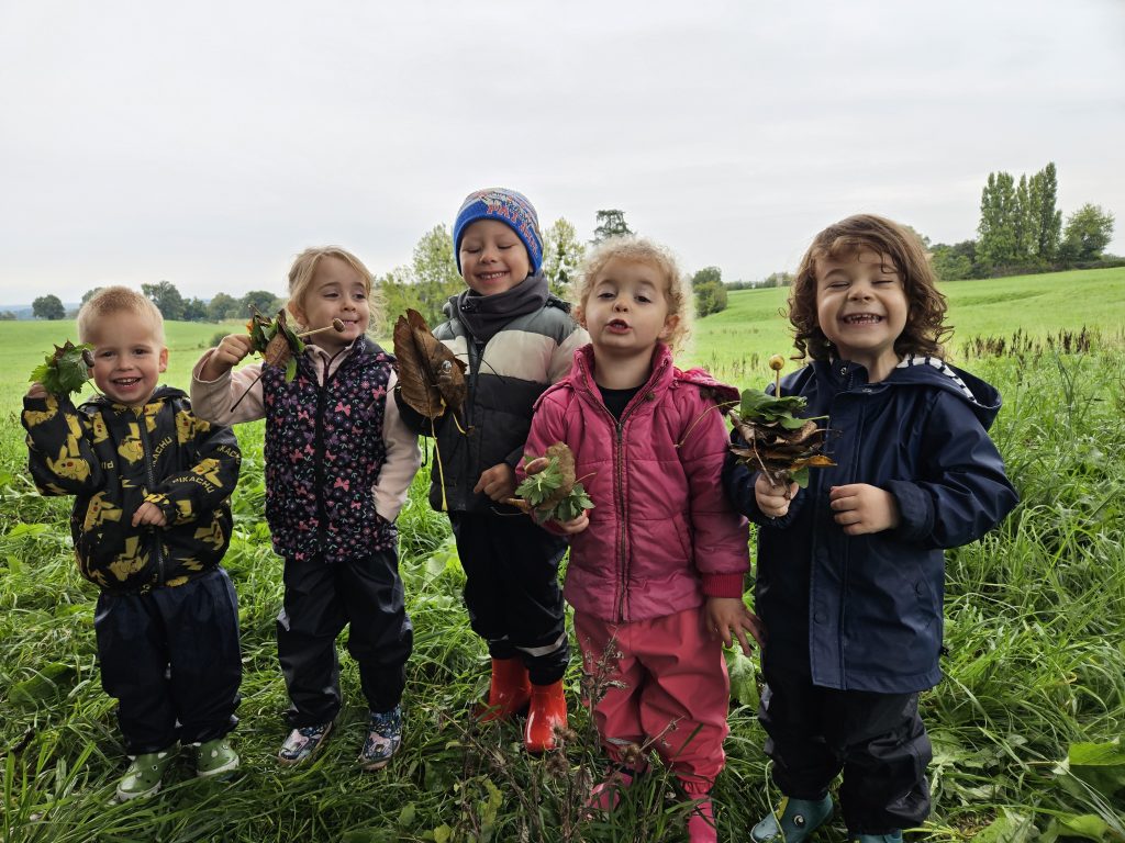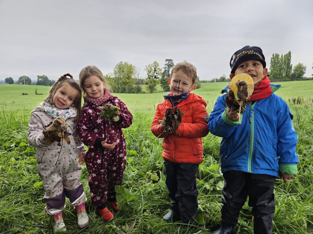 Puis, pour explorer la nature autour de nous, nous sommes partis à la recherche de diverses feuilles pour fabriquer des petites chenilles.