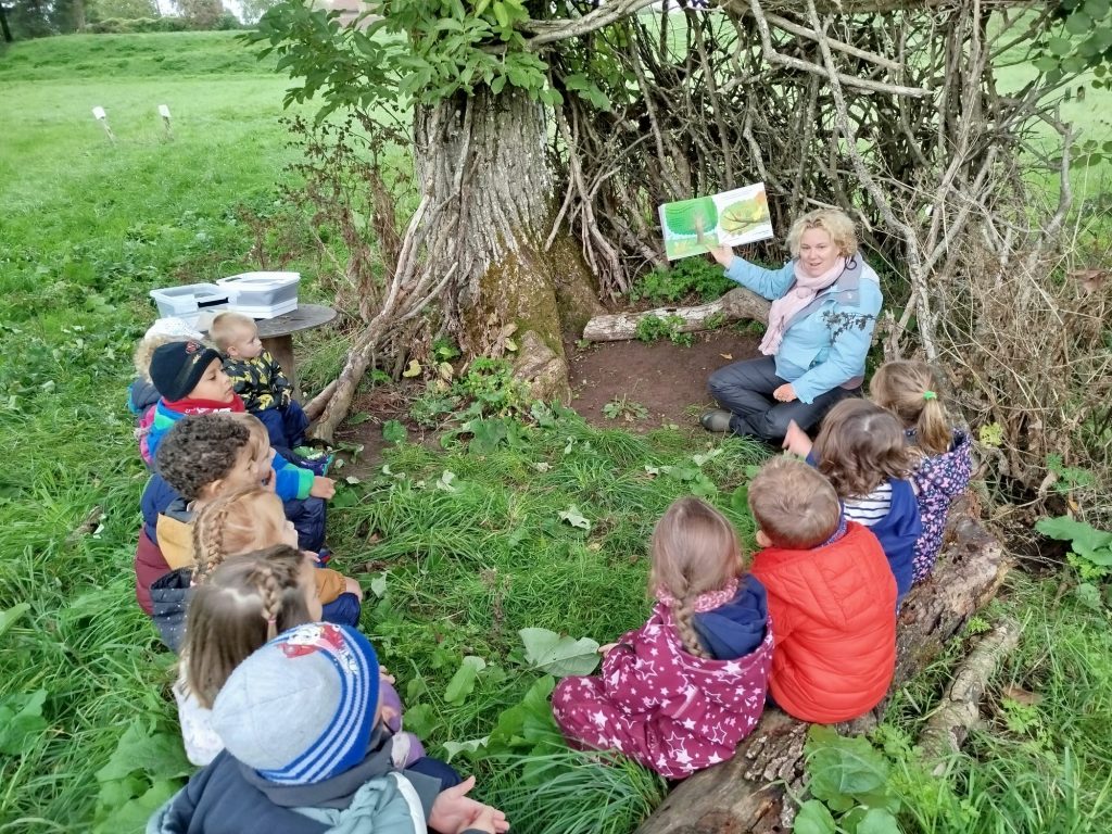 Les moyens étaient très contents de montrer aux petits notre lieu. Nous avons pris le goûter dans notre cabane.