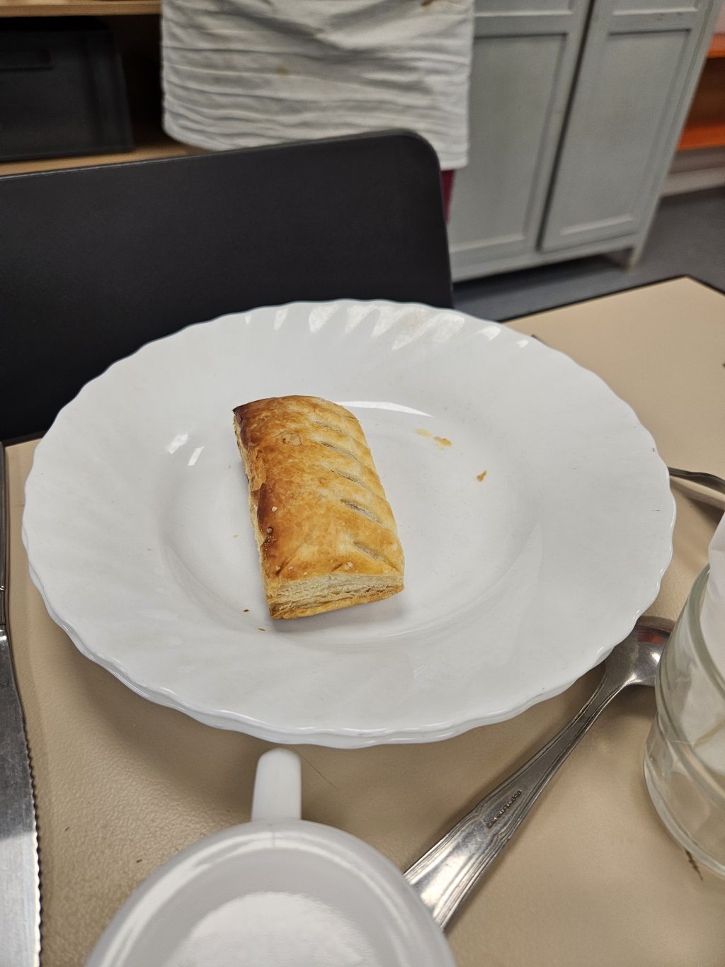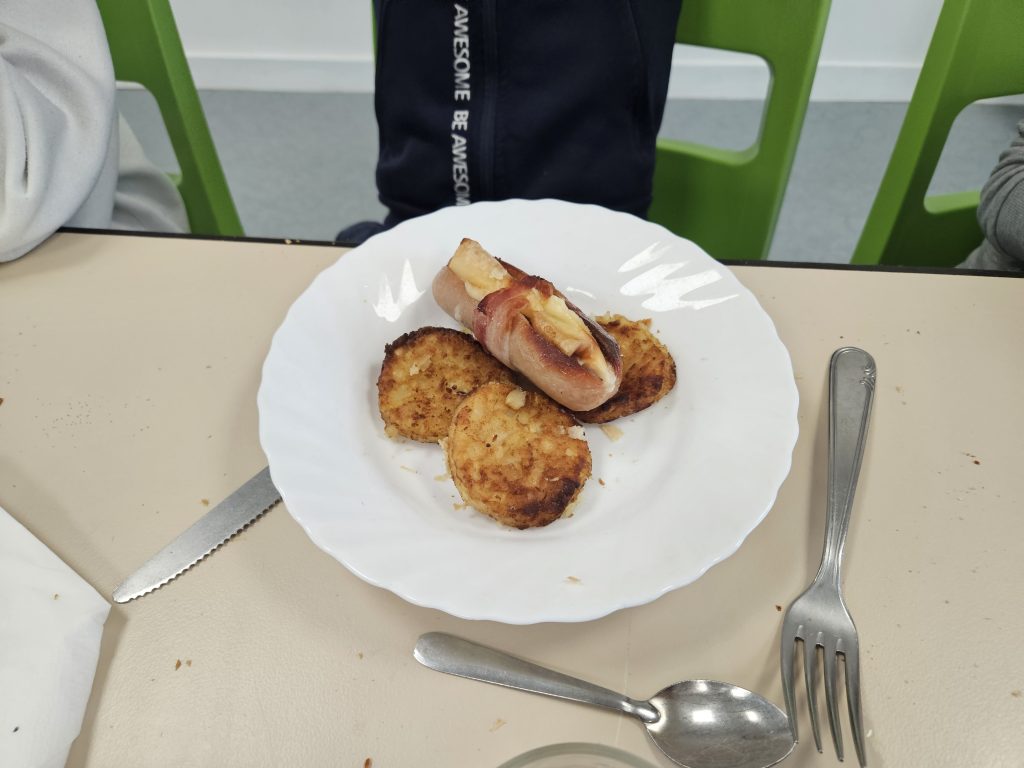 Au menu : friand au fromage, cervelas Orloff et galette de pomme de terre, dessert au chocolat! On s’est bien régalés. Merci Béa !
