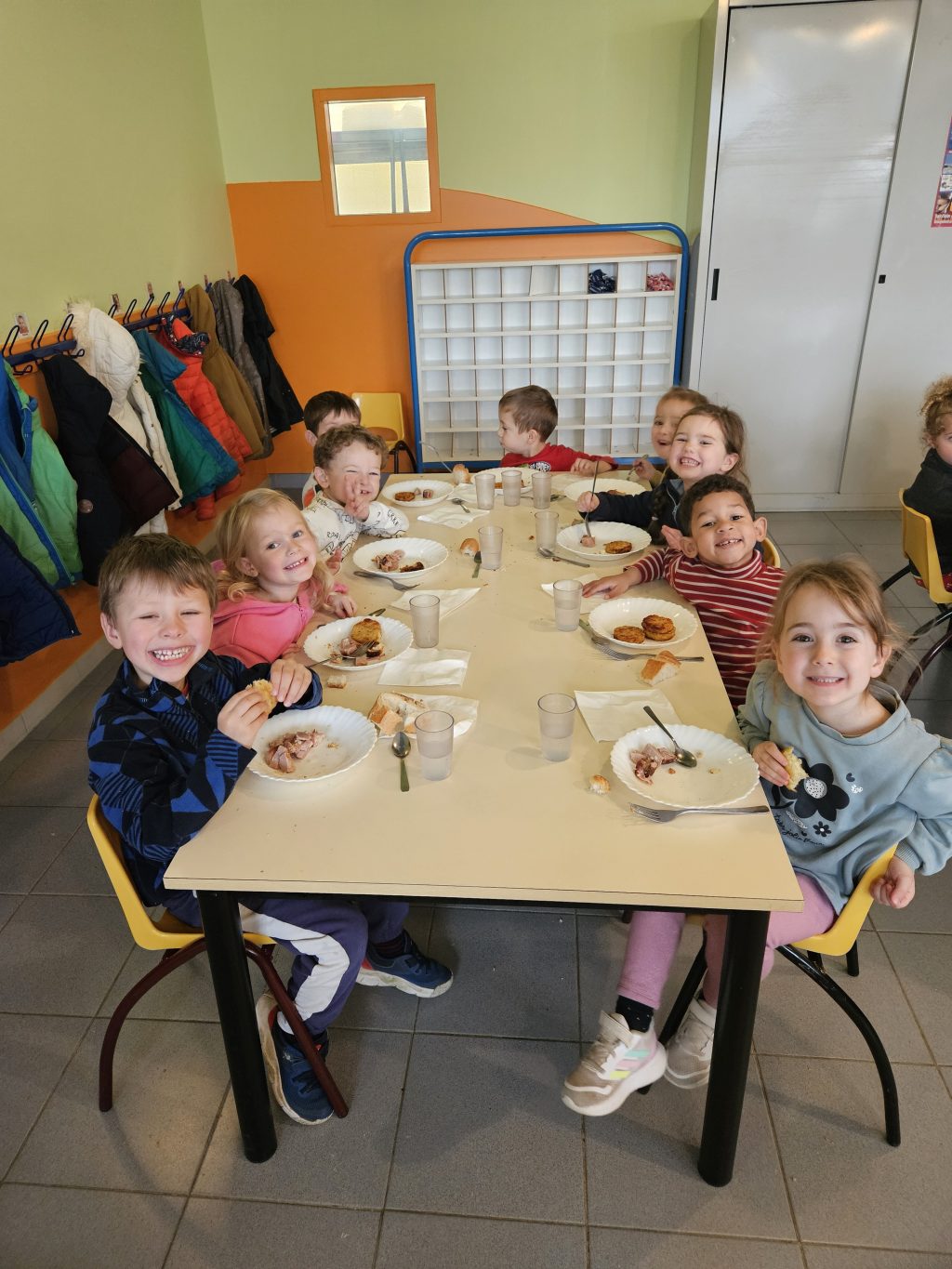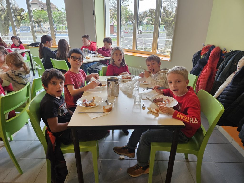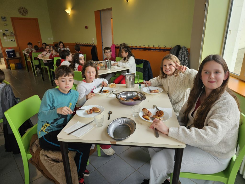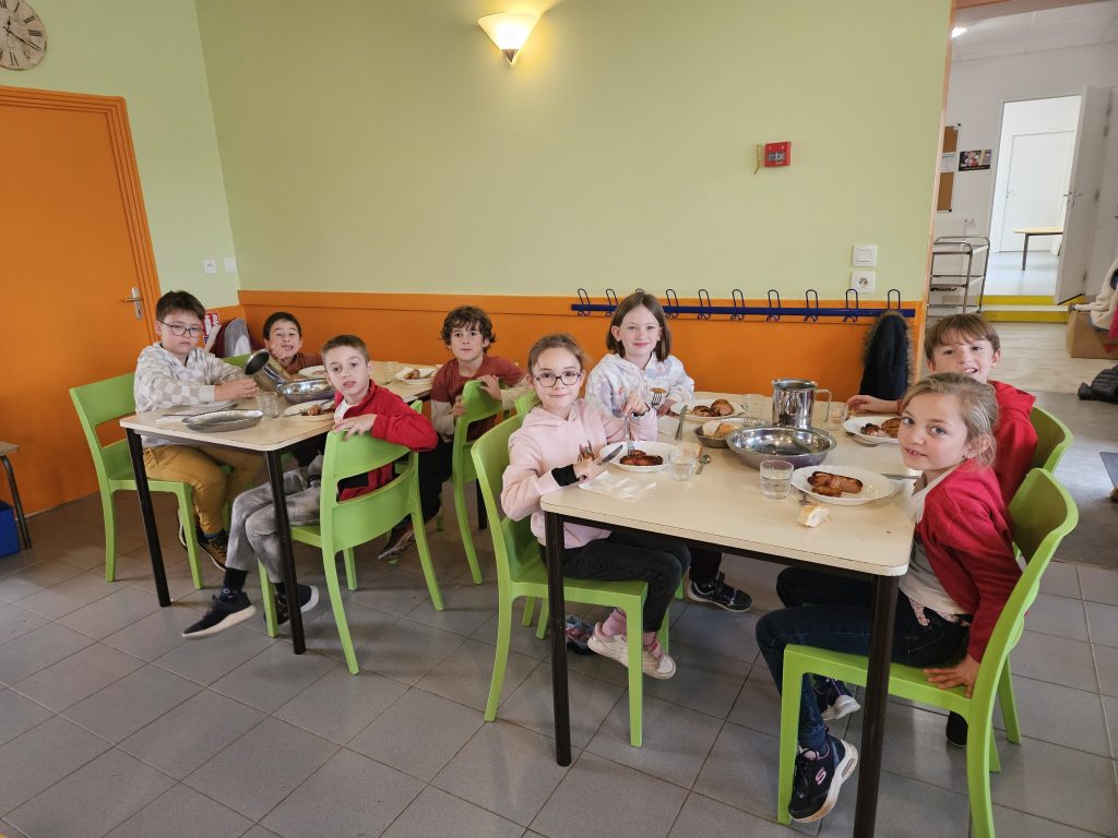 Au menu : friand au fromage, cervelas Orloff et galette de pomme de terre, dessert au chocolat! On s’est bien régalés. Merci Béa !