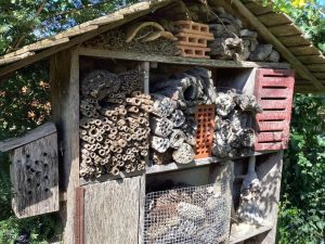 A la balise n°8, on est allé dans un jardin avec un potager. Dans leur jardin, Pierre et Françoise cultivent plein de plantes et pour avoir plus de fruits et de légumes, ils ont construit un hôtel à insectes et ils ne tondent pas la pelouse partout pour avoir plus de fleurs.