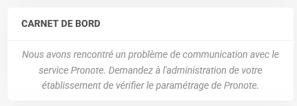 Depuis cet été, il faut autoriser dans Pronote l’export des données de vie scolaire vers un ENT pour que le widget affiche les informations. Dans le cas contraire, les parents et les élèves auront ces affichages :