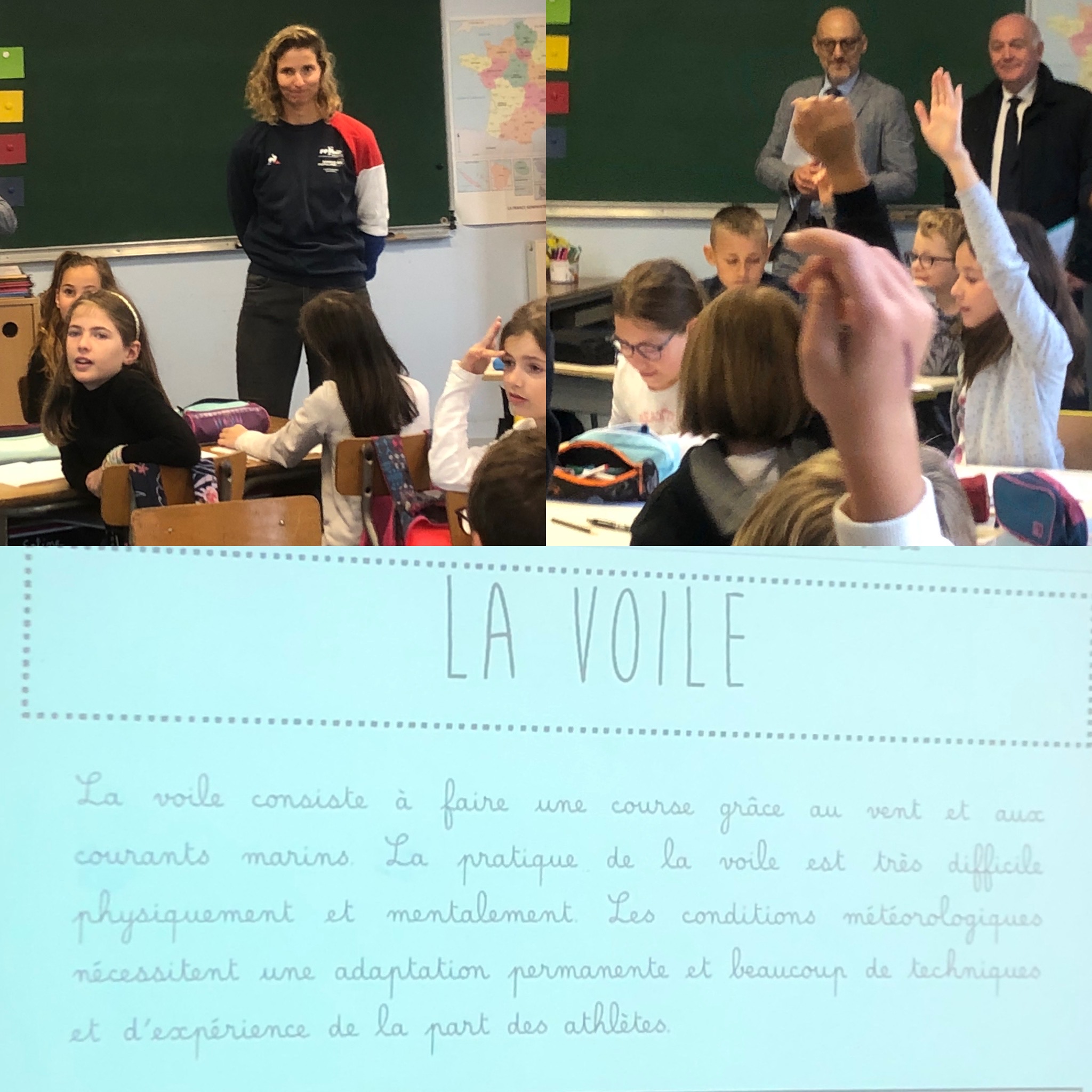 Les élèves de l’école ont découvert et partagé la passion de Sarah pour sa discipline, son parcours depuis son enfance en Charente-Maritime et ses débuts au club de Chatelaillon-Plage, ils ont enrichi leurs connaissances sur les JO, la voile de haut niveau, ils ont questionnés sur les valeurs du sport, la mixité, le respect de l’adversaire…