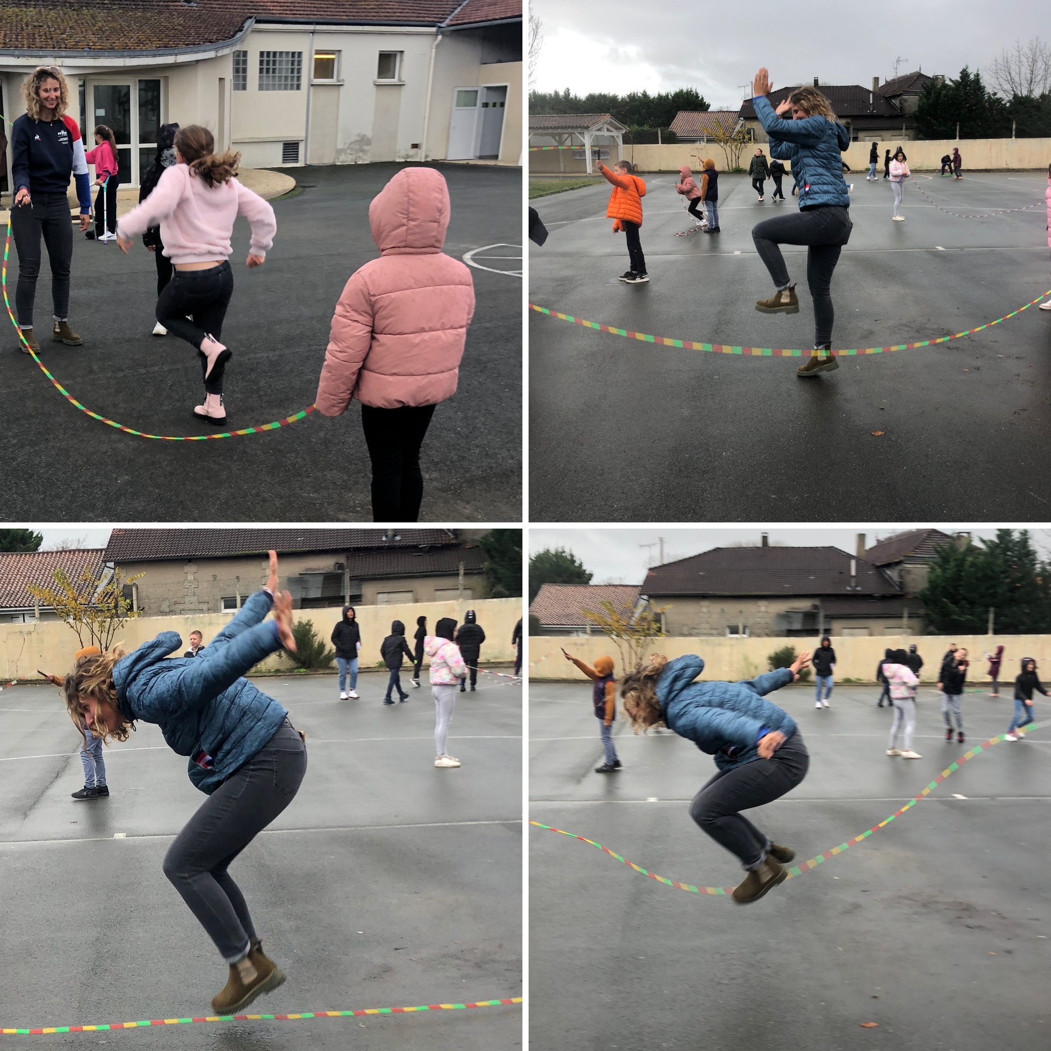 Aujourd’hui, lors des 30mn APQ sont proposés des défis Double-Dutch, défis vitesse, défi artistique, défis freestyle. Les propositions varient en fonction de la programmation en EPS tout au long de l’année.
