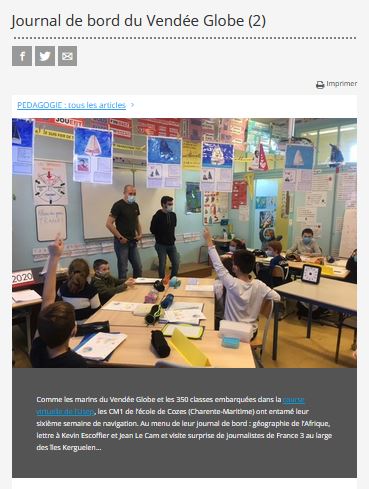 En attendant de vous retrouver en 2021, nous partageons avec vous le projet de l’école de Cozes qui s’est engagée à suivre le Vendée Globe avec Virtual Regatta!